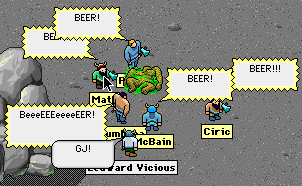 The Dwarven Militia was, of course, one of the first clan that refounded after the Ripture Wars. Warplet had disappeared for a few months so I naturally took charge in my new persona as Math, Warplet's brother. Here we are as newbies killing our first Zerk, before clan registration was open.